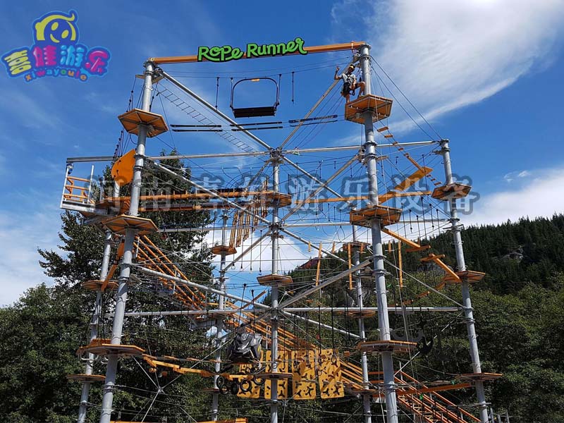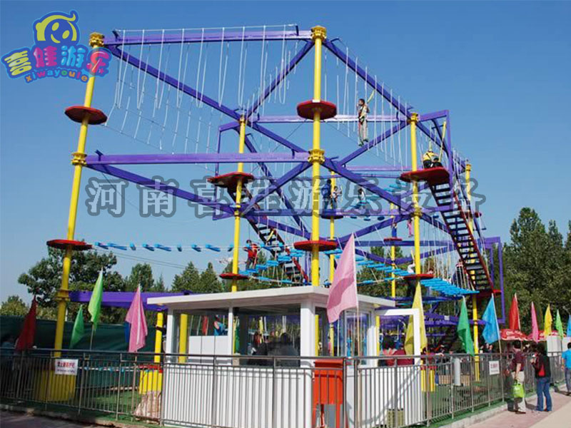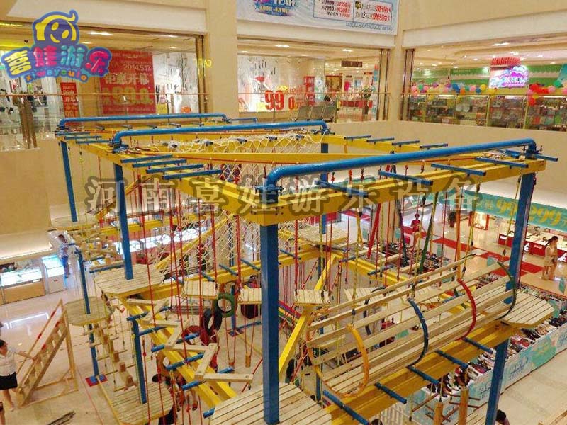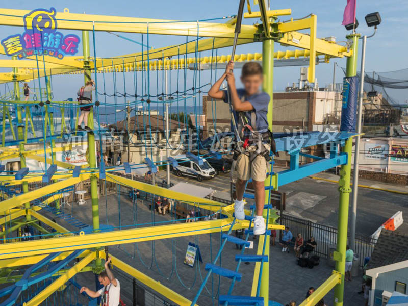拓展类游乐设备空中步道是一款多元化的儿童游乐设施,整体造型也是根据场地和客户的实际需求来进行定制,没有固定的造型,设备整体由钢结构支撑,设置多种可供小孩子们玩乐的项目,以空中阶梯为主,也可设置绳网、蹦床等,能够让孩子们很好的进行娱乐,其功能越多,越能吸引小朋友们眼光,是一款非常不错的设备,在很多大型商场内,广场、公园都有类似的设备。